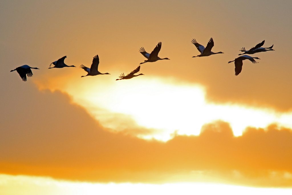 It was a classic vista: the mild December sun setting over the vast wetlands of Tram Chim National Park in the Dong Thap province of Viet Nam – the horizon awash in hues of amber and gold. The sky is alive with the flight of over 1,000 1.8-metre-tall sarus cranes (Antigone antigone), with their graceful silhouettes dancing across the pastel background of the Mekong Delta, as they journey on their migration from their breeding grounds in Cambodia.